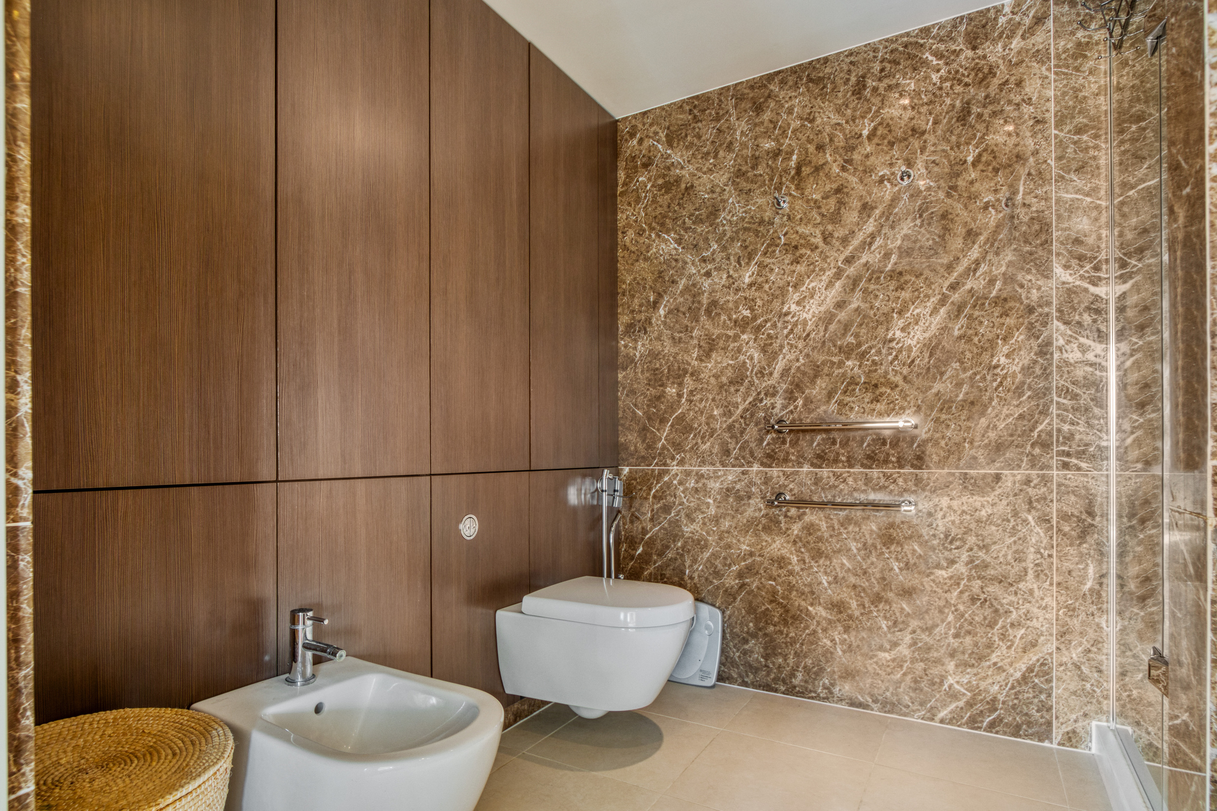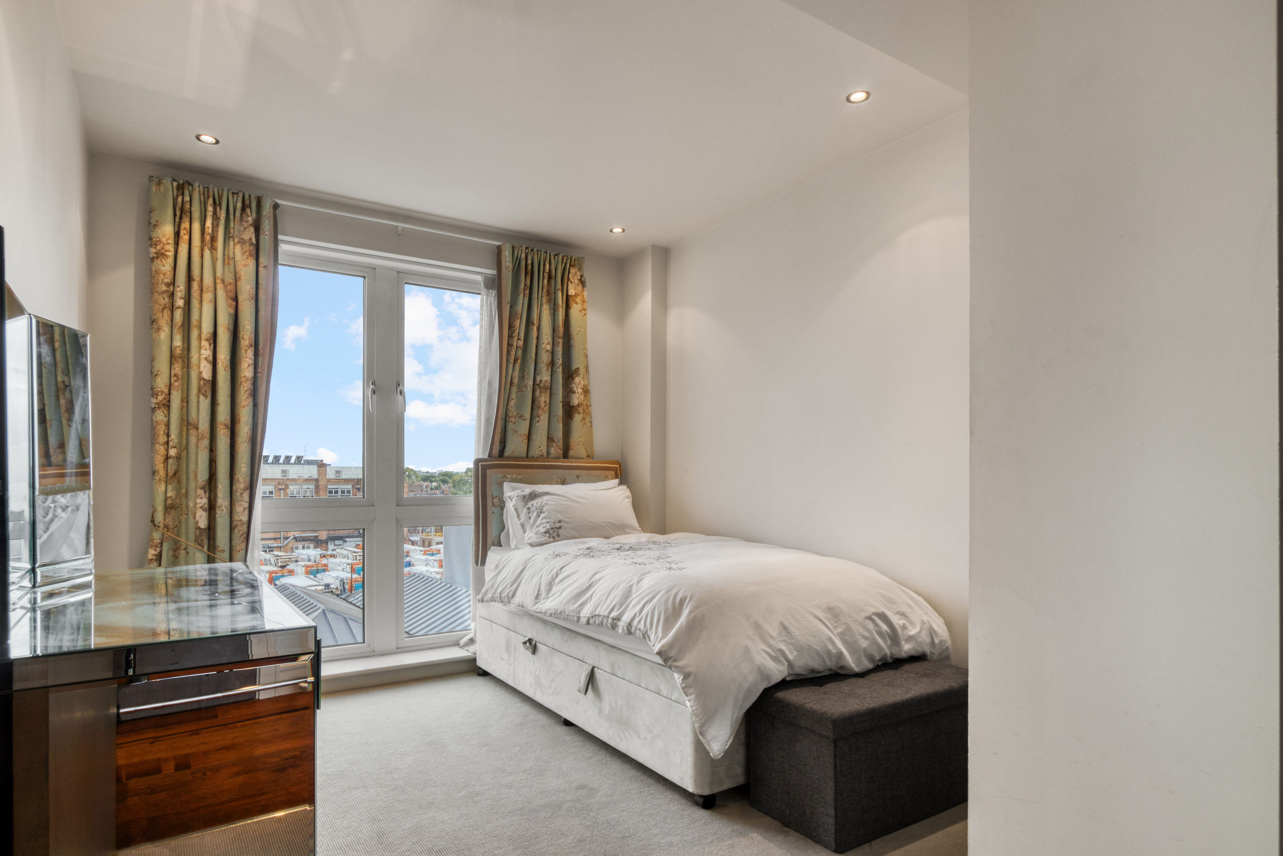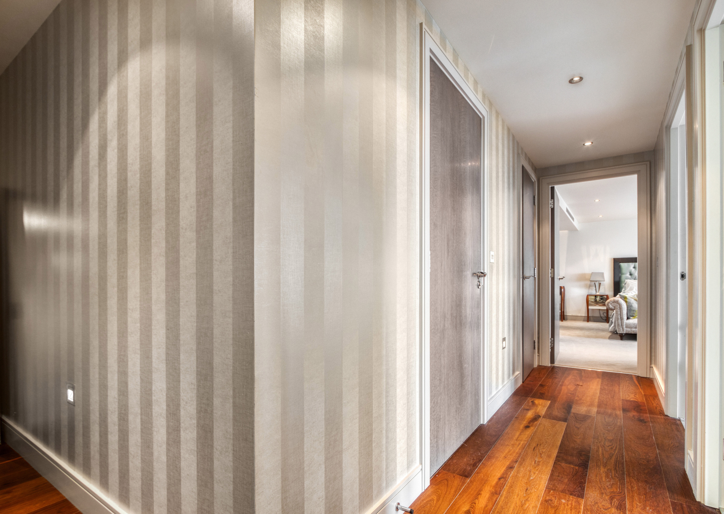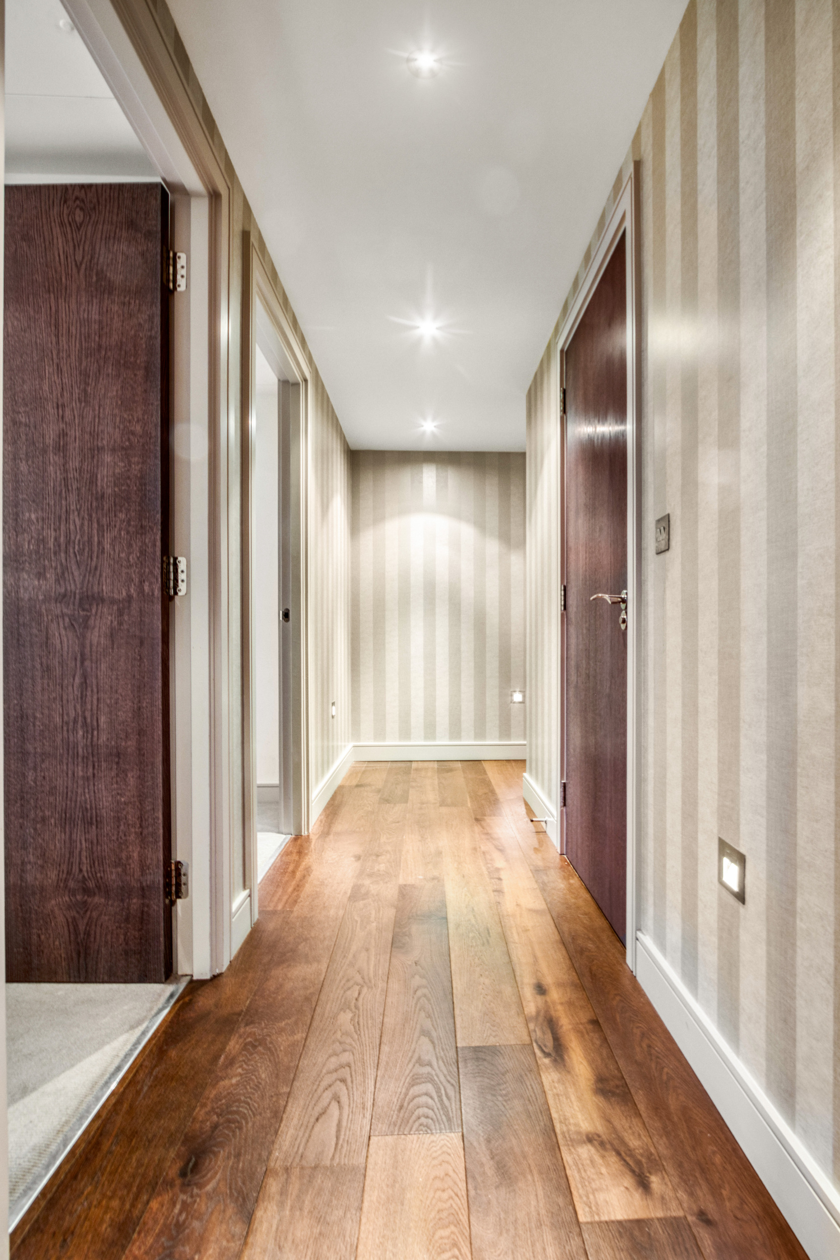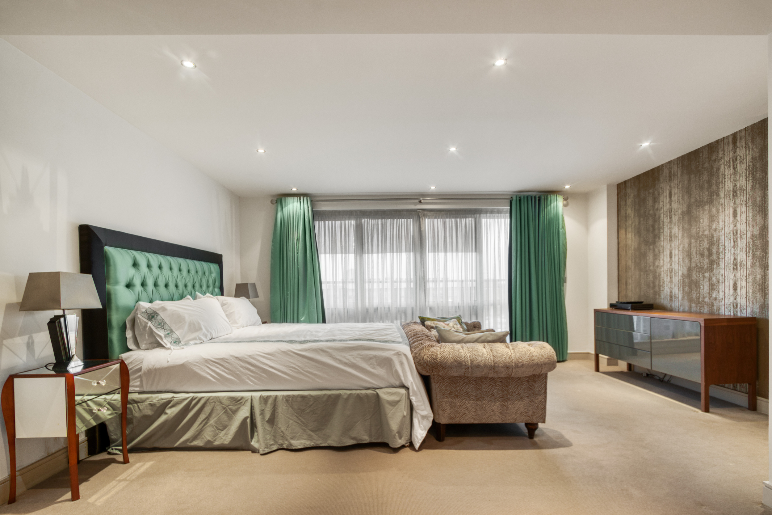 The apartment faces Park Road with two terraces and comprises five double bedrooms. The principal bedroom is particularly impressive, boasting an ensuite dressing room, a private terrace, and a luxurious bathroom.