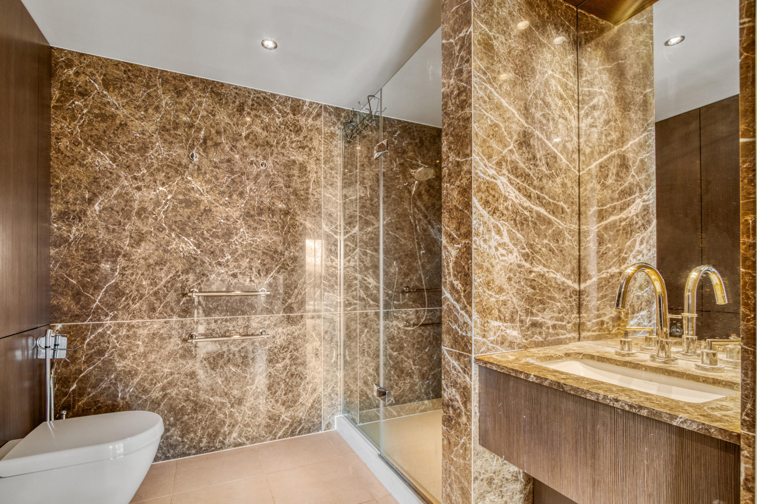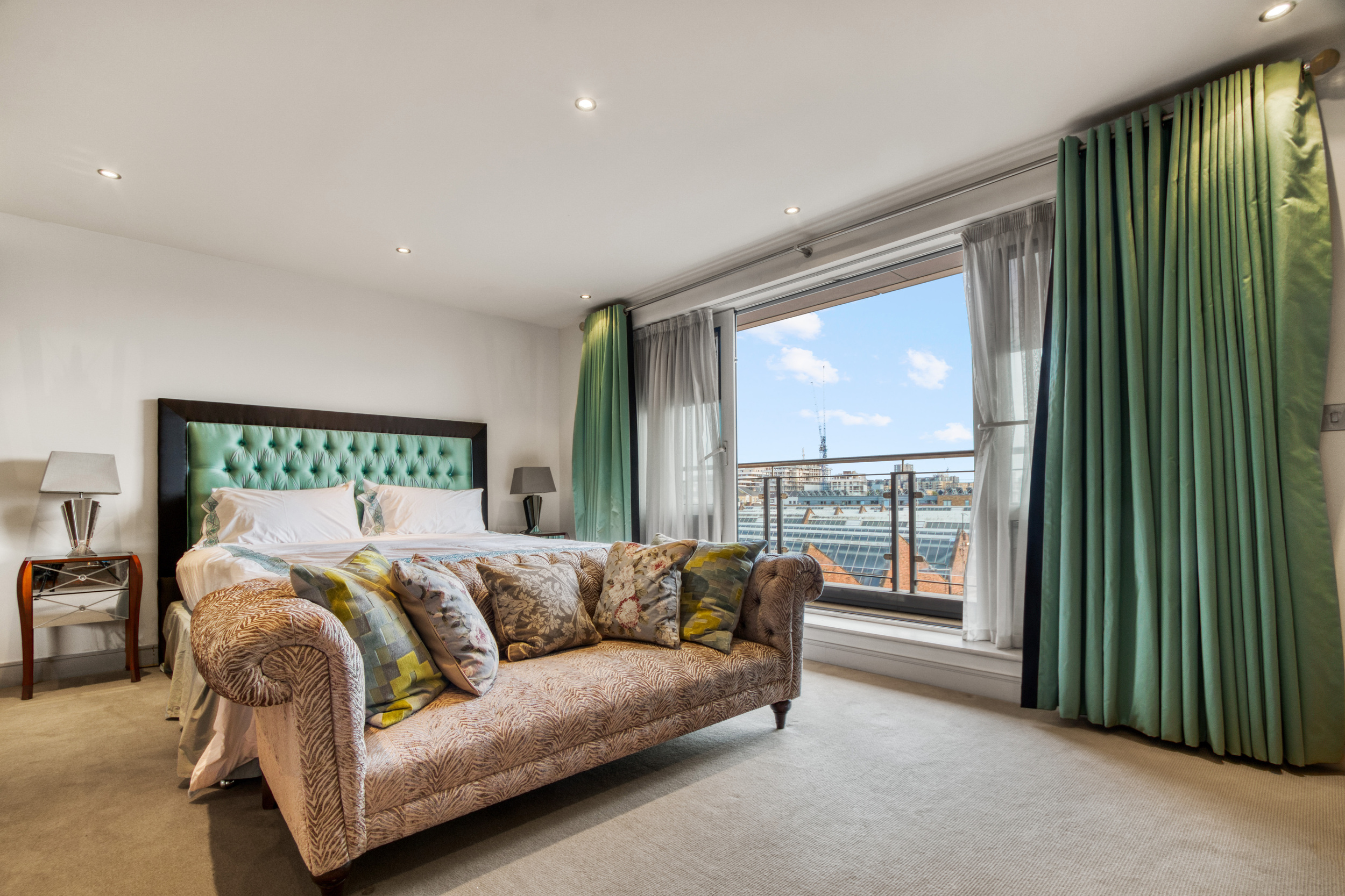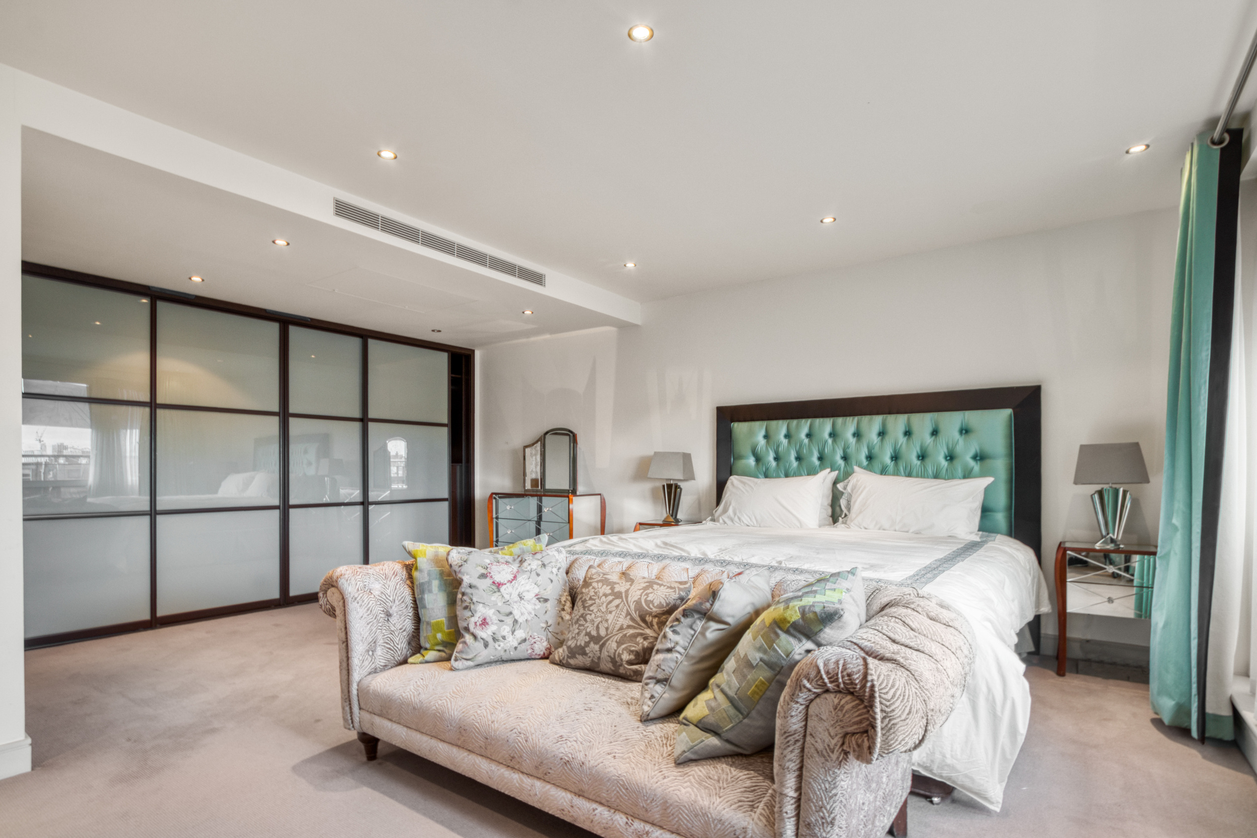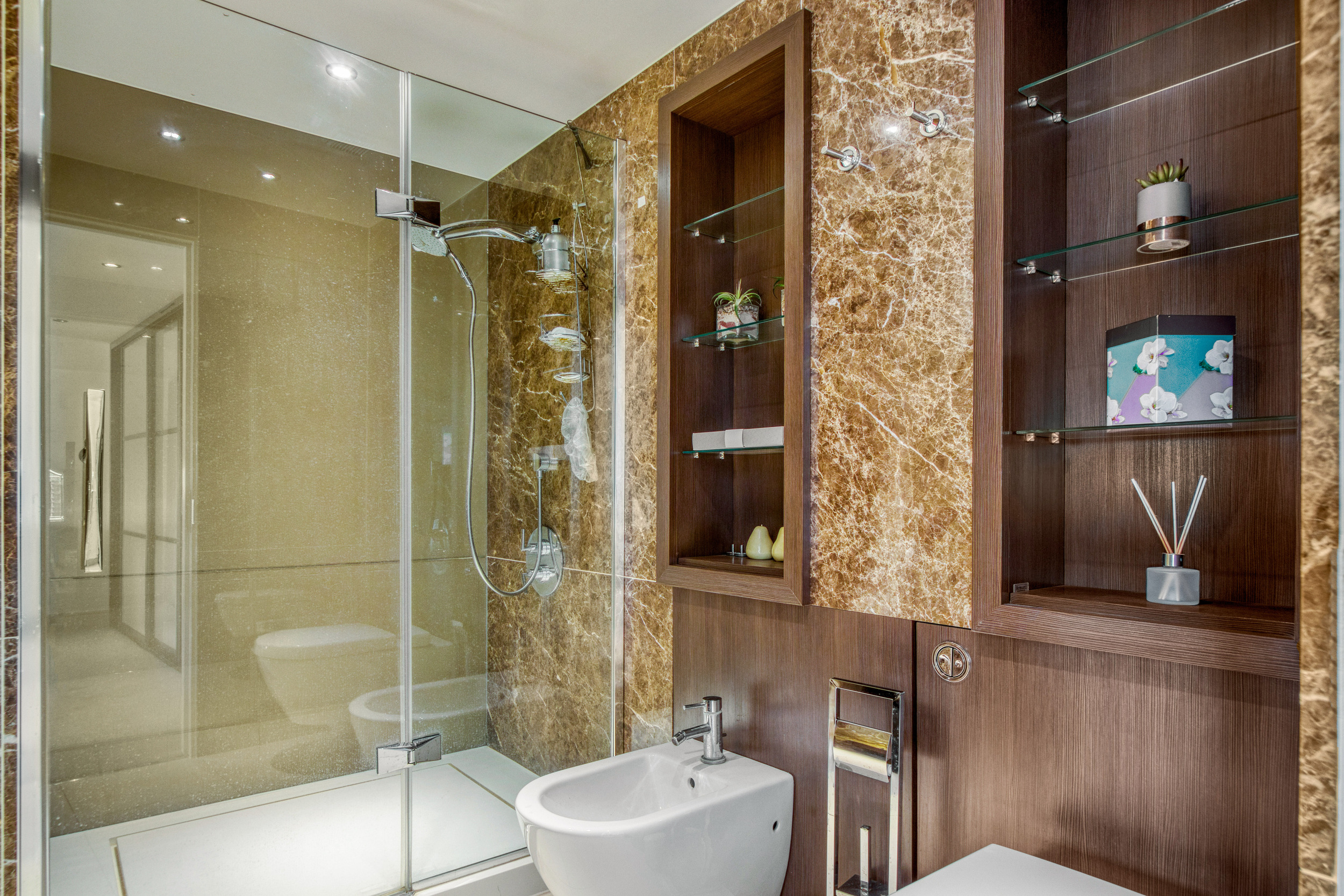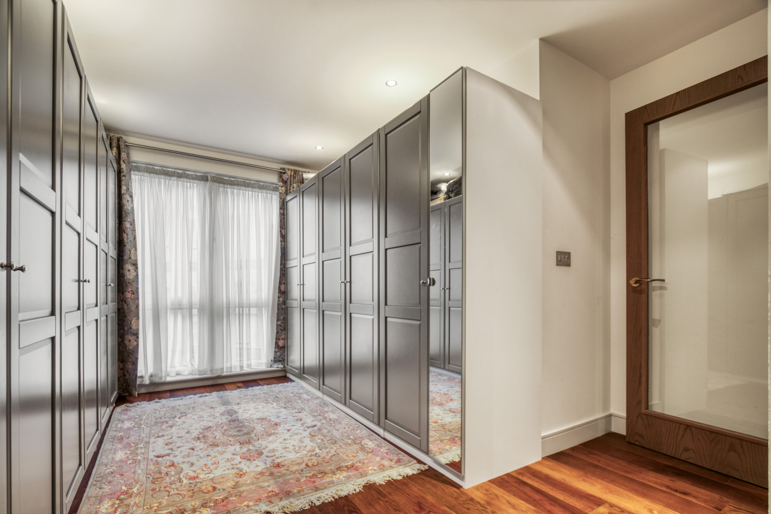 The apartment faces Park Road with two terraces and comprises five double bedrooms. The principal bedroom is particularly impressive, boasting an ensuite dressing room, a private terrace, and a luxurious bathroom.