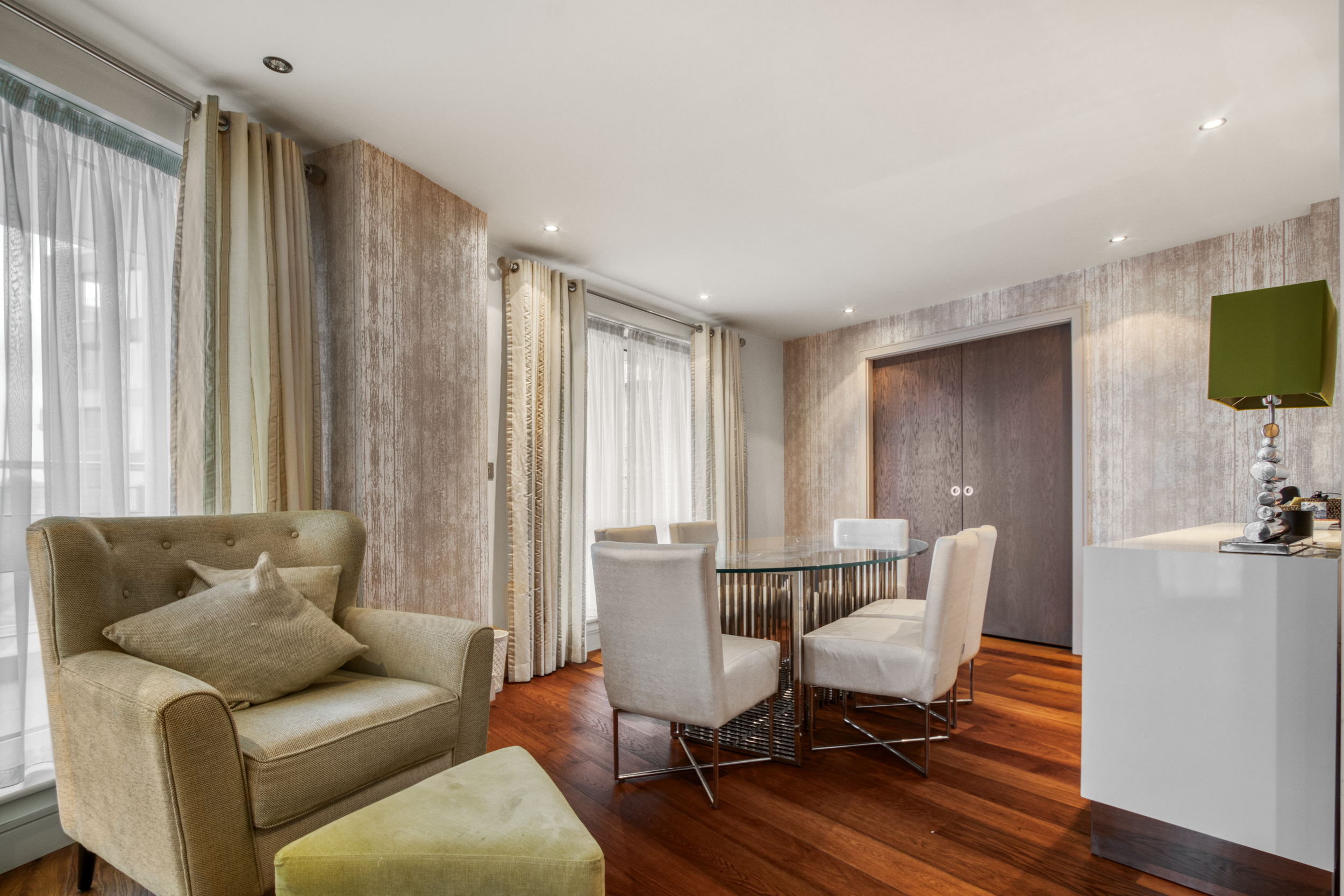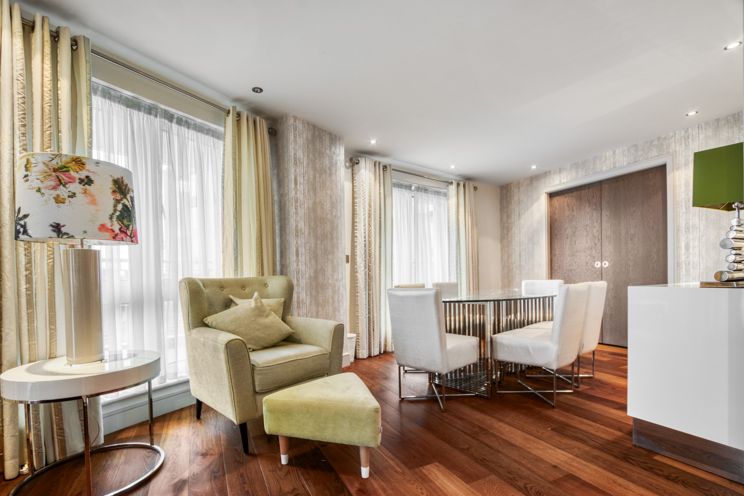 Chelsea Creek development is part of the prestigious Chelsea Creek area, excellently positioned for easy access to Heathrow, Central London, and the vast array of amenities on The Kings Road and in central Chelsea. The development benefits from a 24-hour concierge service and access to the Chelsea Creek Health and Fitness Centre, which offers an indoor swimming pool, sauna, steam room, gym, and treatment room.