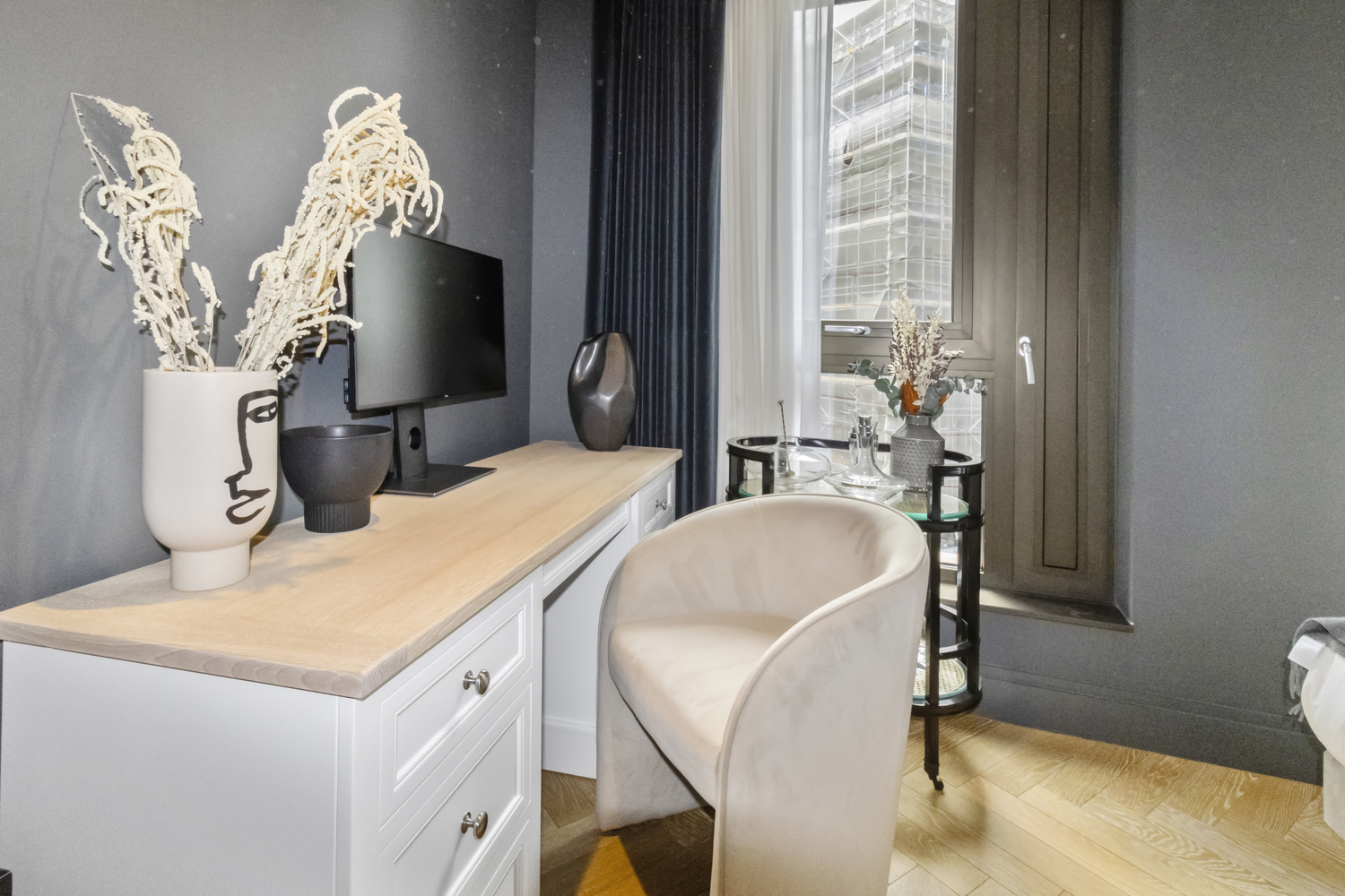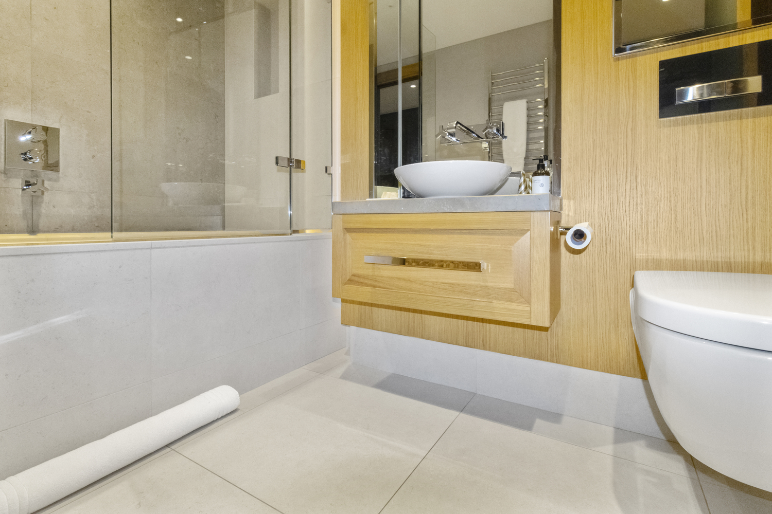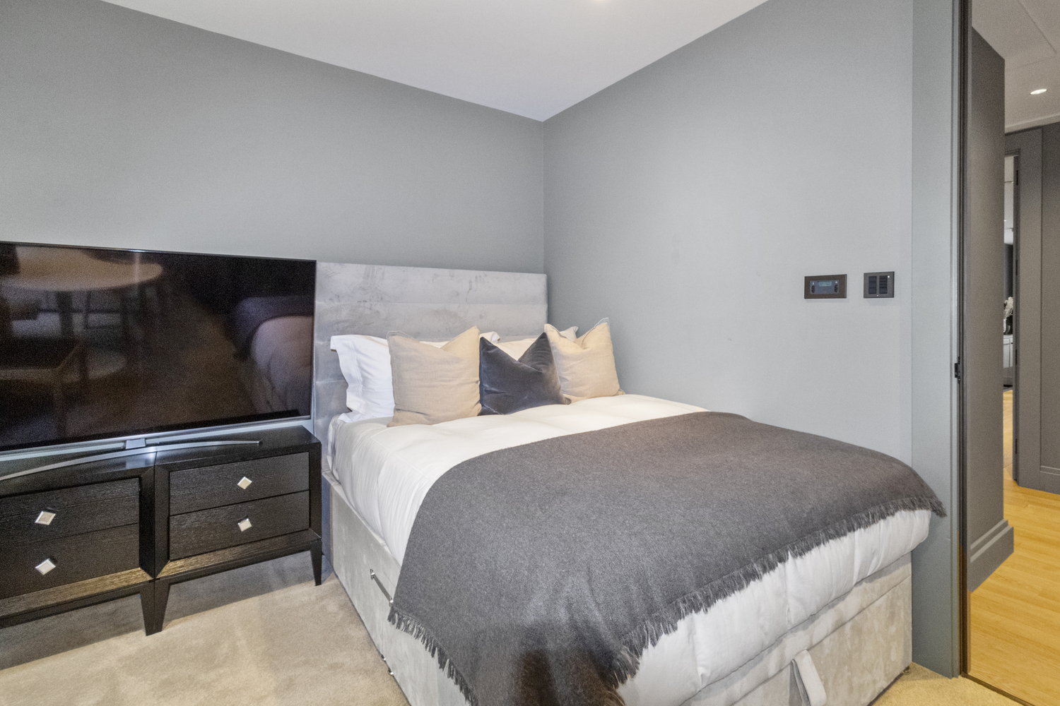 A luxurious 3 bedroom, 2 bathroom apartment contained within an impressive 1389 sq. ft interior with a spacious living room and modern open plan kitchen. The property is finished to an exceptionally high standard and is laid with stunning parquet wood flooring and composite stone kitchen worktops with a beautiful black finish