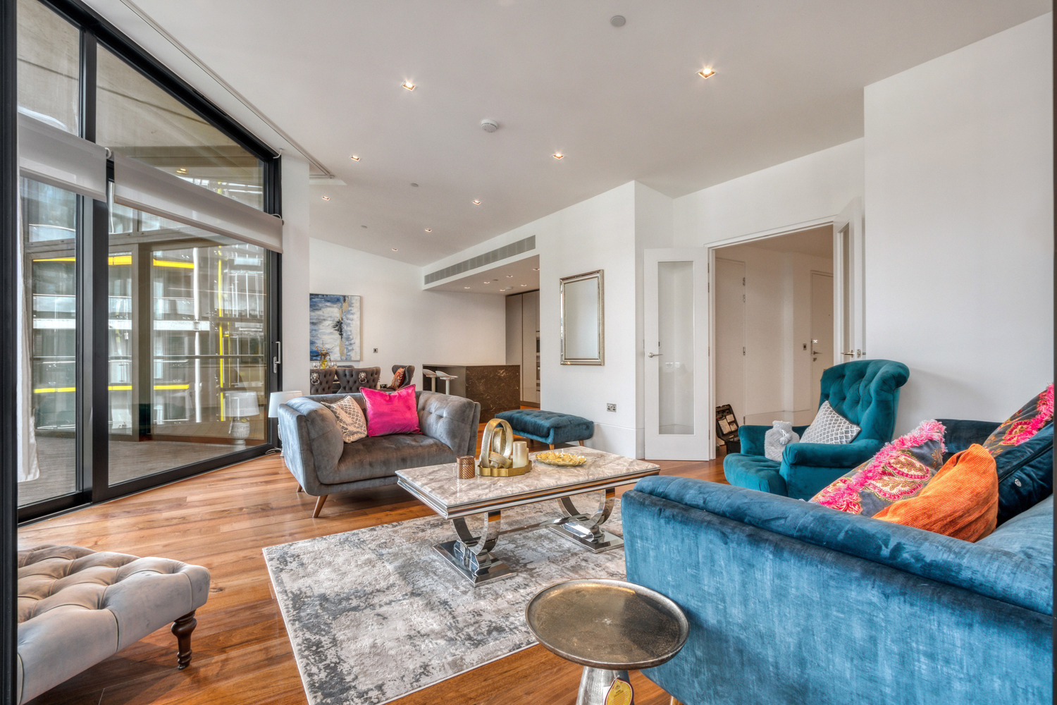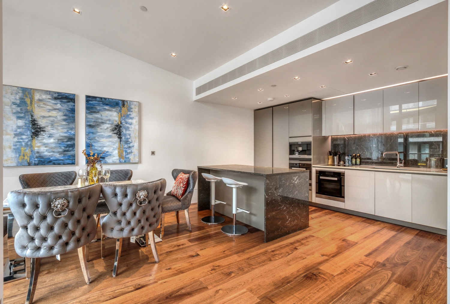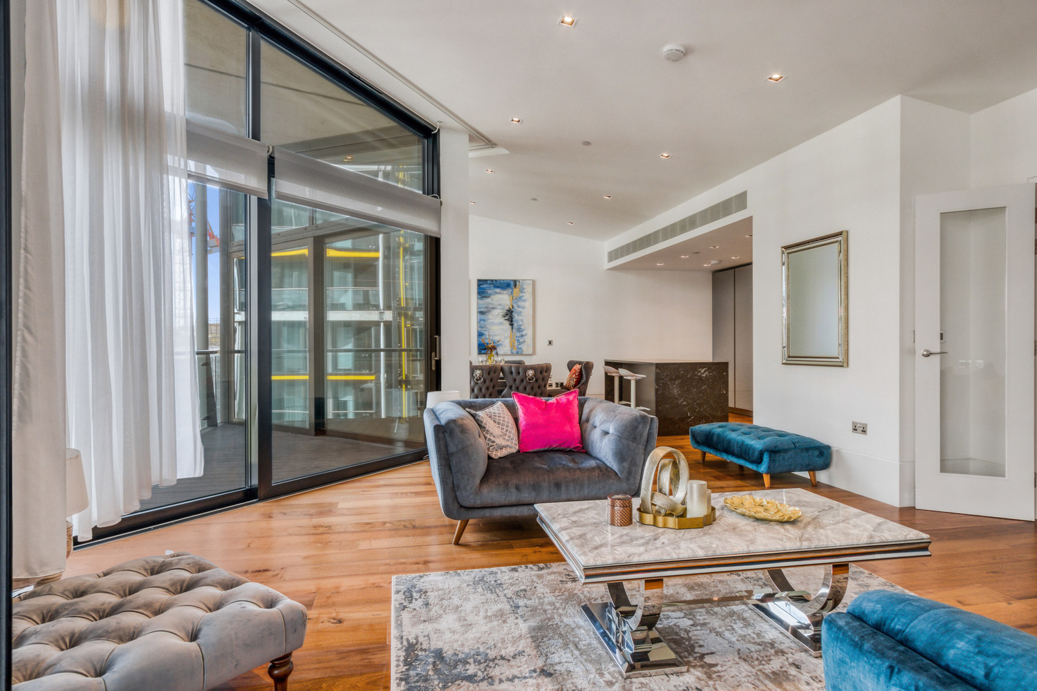 On the banks of the renowned River Thames, in the Nine Elms Development, lies the cutting-edge structure known as Riverlight Quay. The following amenities are available to all residents of this contemporary development: A virtual gaming room, a heated pool and jacuzzi, a sauna, a gym, a room for movies, and nearby supermarkets are all on-site. Walking distance from Vauxhall, Nine Elms, and Battersea Power Station.