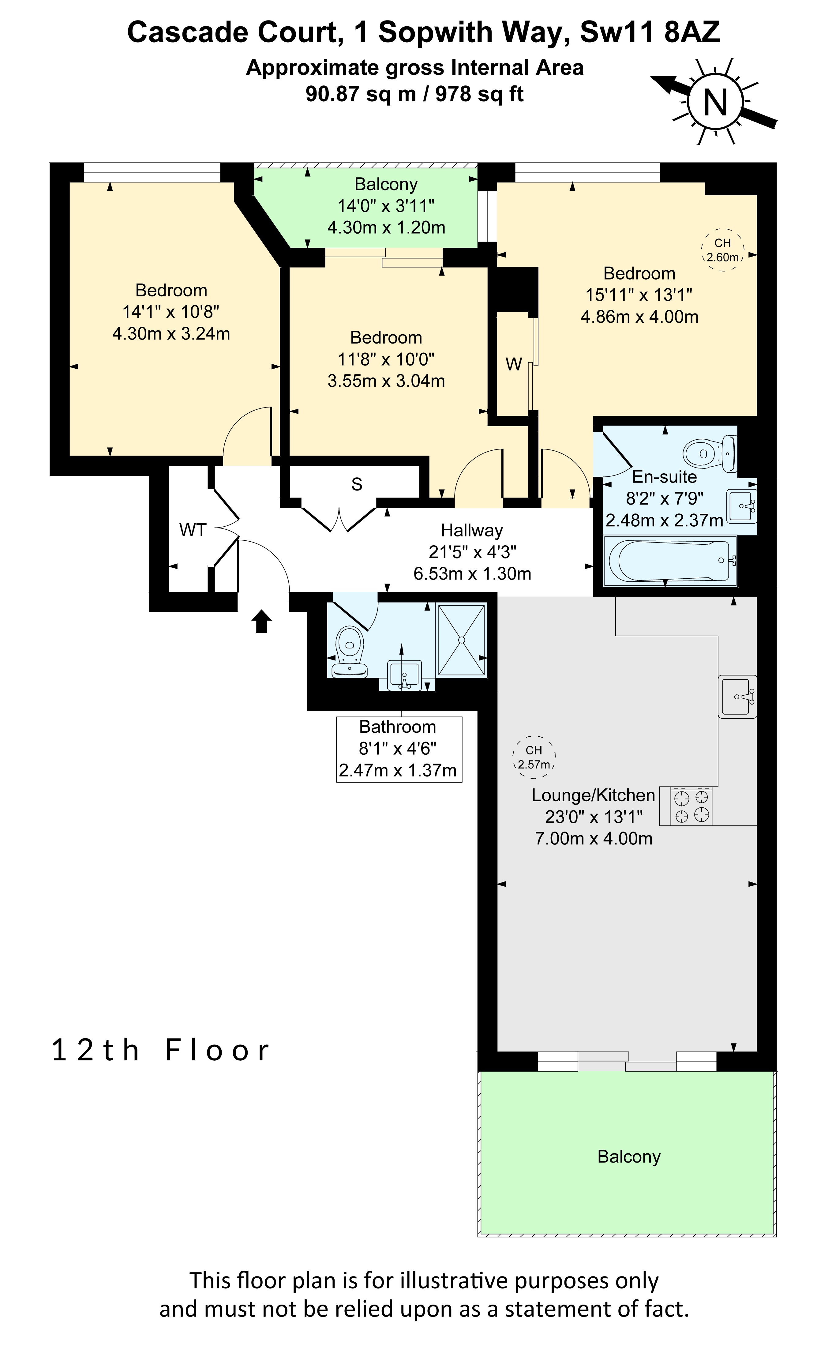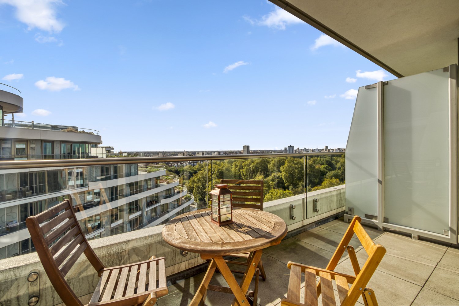 Spanning an expansive 978 sq. ft. (Approx.) internally, this residence exudes sophistication. Two spacious balconies offer breath taking vistas of London's famed Battersea Park, providing a serene urban oasis.