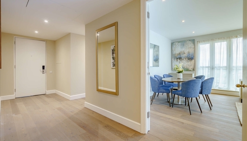 Eighth-floor elegance in a 1060 sq ft interior-designed haven. Fully furnished, open-plan living, light oak flooring, and dedicated dining. Floor-to-ceiling windows reveal a private balcony with breathtaking Canary Wharf views.