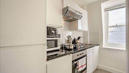 Delighted to present this eighth-floor, two-double-bedroom apartment in the heart of Mayfair, offering rear-facing views over Hay's Mews. Spanning 735 sq ft, it features spacious bedrooms, a modern fitted bathroom, an airy reception room, and a unique kitchenette with additional storage and access to a private gated communal garden.