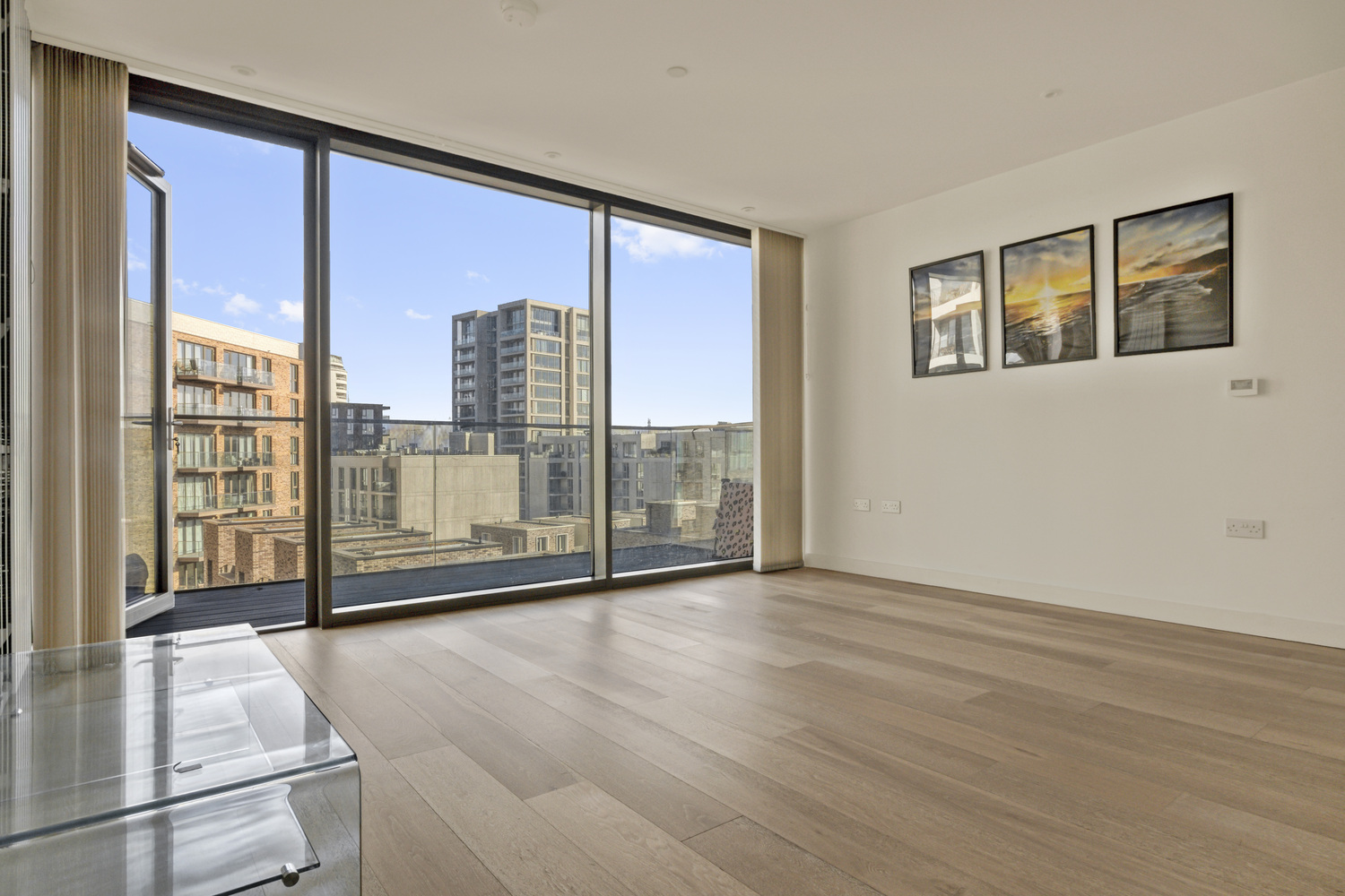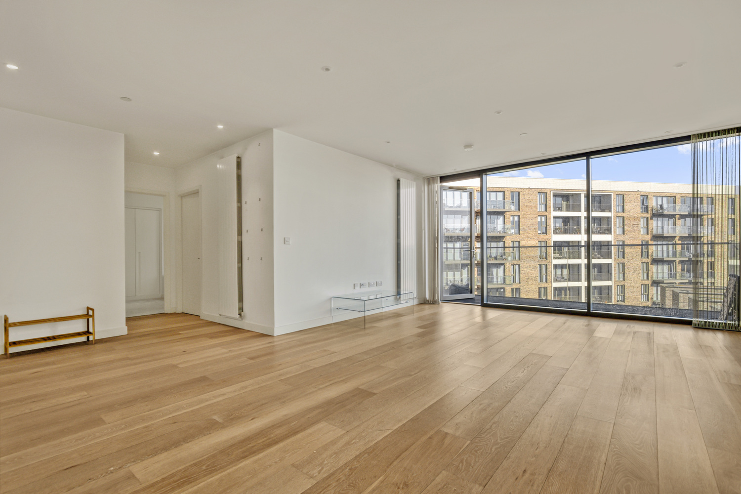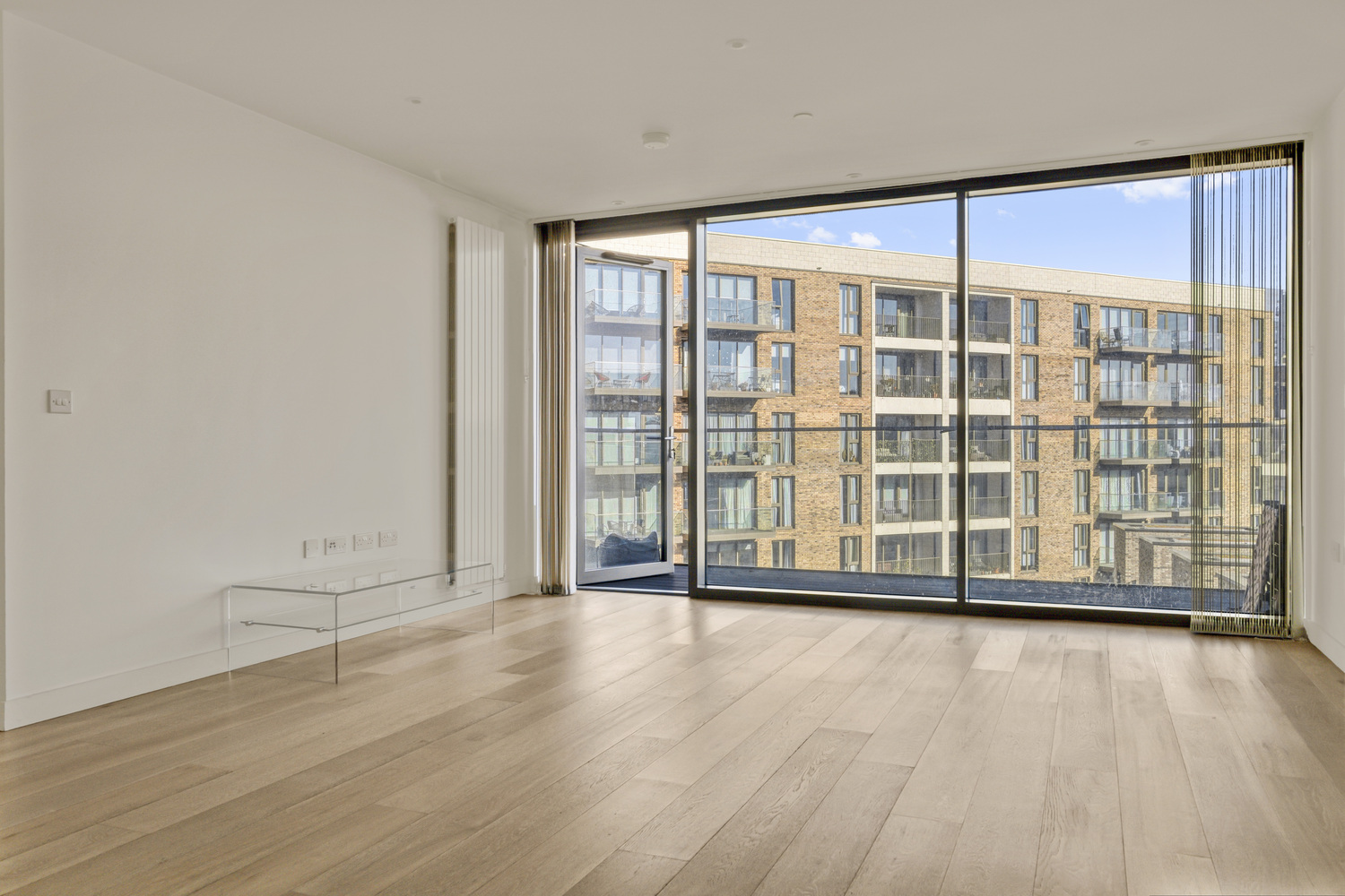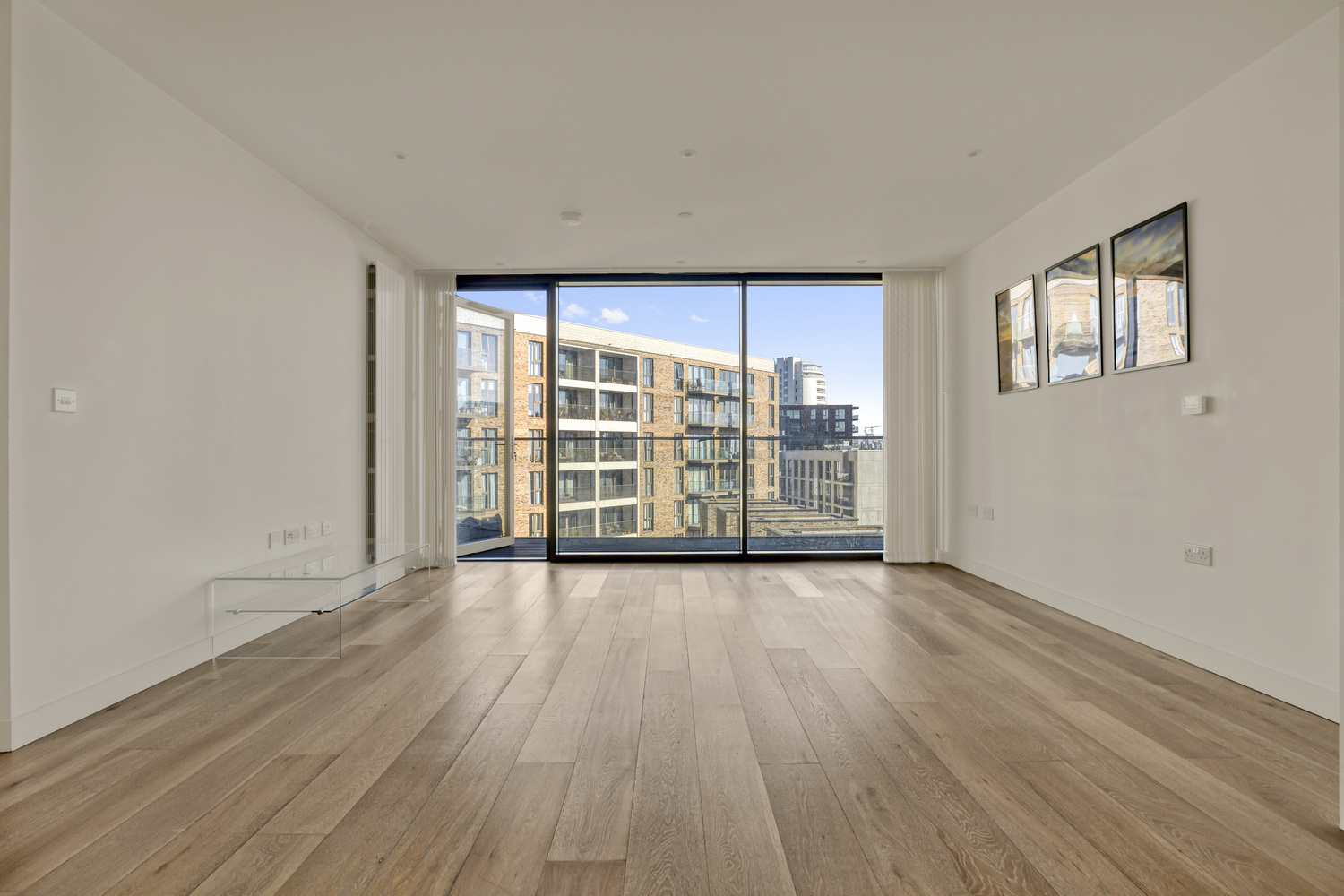 This gorgeous two-bedroom, two-bathroom apartment is on the sixth story of the magnificent Royal Wharf building on the banks of the Thames.